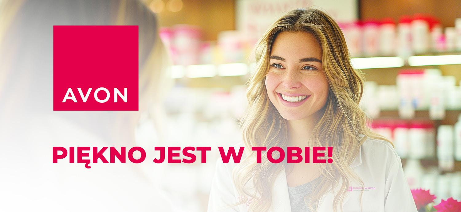 Avon to znana i lubiana przez wiele kobiet firma, zajmująca się bezpośrednią sprzedażą kosmetyków do pielęgnacji, makijażu oraz perfum. W ofercie marki znajdziesz także biżuterię oraz różnego rodzaju akcesoria. Sprzedażą produktów marki, zajmują się konsultantki, które dostarczają je bezpośrednio do klientów. Rozpocznij fantastyczną przygodę z Avon i zostań jedną z nich!
